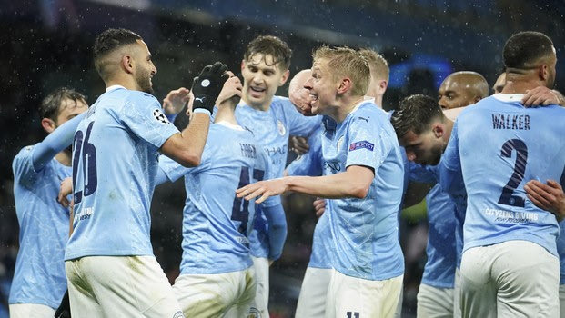 Οι παίκτες της Μάντσεστερ Σίτι πανηγυρίζουν τέρμα που πέτυχαν κόντρα στην Παρί