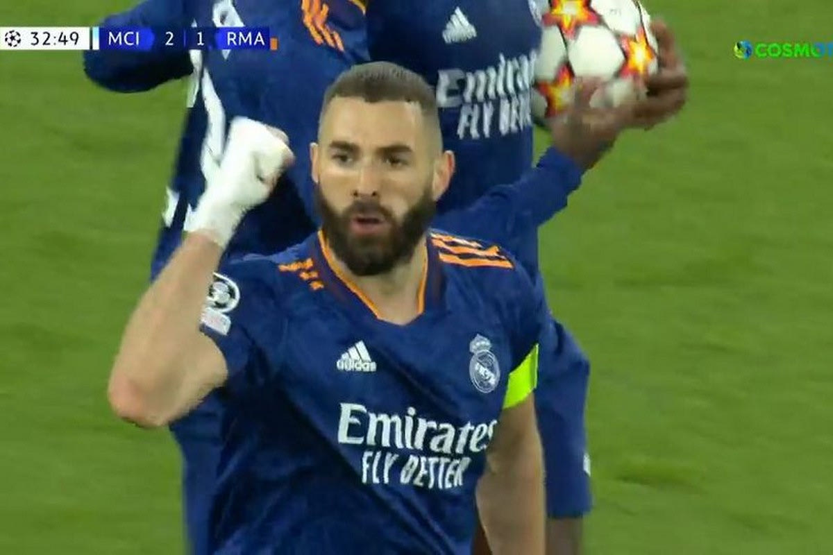 Ο Καρίμ Μπενζεμά πέτυχε ένα πόλυ όμορφο γκολ με μια επαφή κόντρα στη Μάντσεστερ Σίτι στο 33', έπειτα από σέντρα του Μεντί από τα αριστερά.