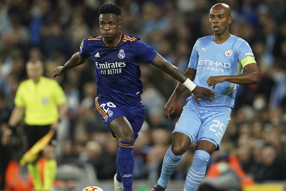 Φάση από την αναμέτρηση Μάντσεστερ Σίτι - Ρεάλ με πρωταγωνιστές τους Φερναντίνιο - Βινίσιους | 26 Απριλίου 2022