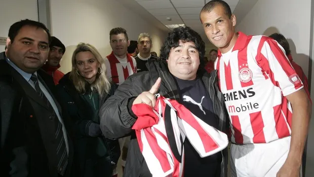 Αυτό έγινε καθώς ήταν καλεσμένος στη φιέστα του Ολυμπιακού για την κατάκτηση του πρωταθλήματος της σεζόν 2005-06, με τον απίστευτα αδυνατισμένο -σε σύγκριση με την προηγούμενη παρουσία του στην Ελλάδα- Μαραντόνα να κάνει κόλπα με τη μπάλα στα πόδια έχοντας για συμπαραστάτες μεταξύ άλλων τους Ριβάλντο και Καστίγιο.