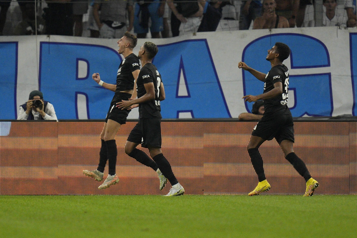 Οι παίκτες της Άιντραχτ πανηγυρίζουν γκολ που σημείωσαν κόντρα στη Μαρσέιγ για τη φάση των ομίλων του Champions League 2022-2023 στο "Βελοντρόμ", Μασσαλία | Τρίτη 13 Σεπτεμβρίου 2022 © 2022 Daniel Cole/Associated Press