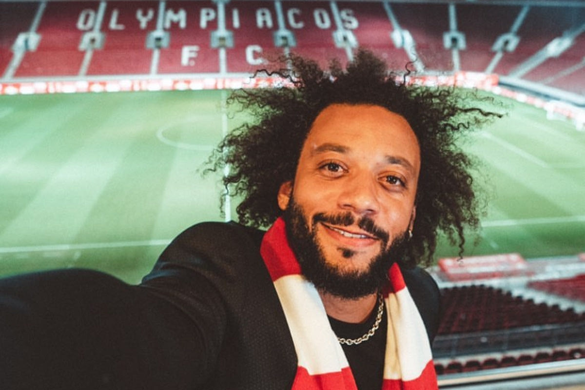 Η σέλφι του Μαρσέλο με θέα το Καραϊσκάκης μετά την παρουσίασή του από τον Ολυμπιακό
