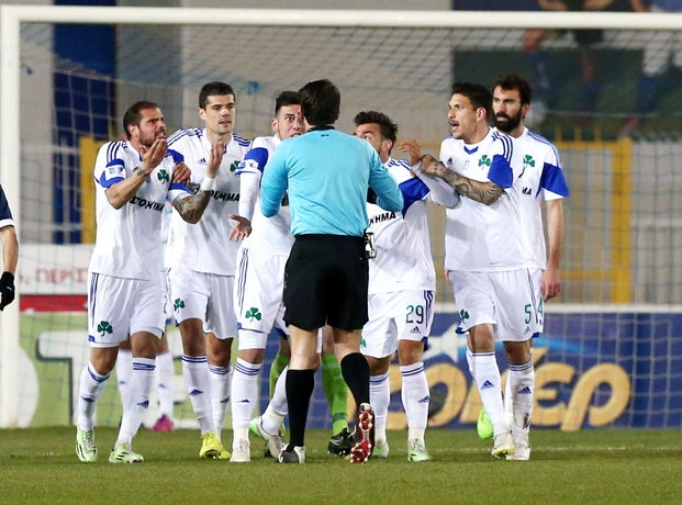 Αναβρασμός επικρατούσε στα αποδυτήρια του Παναθηναϊκού μετά τη λήξη του παιχνιδιού με τον Ατρόμητο, με αποδέκτη της δυσαρέσκειας τον διαιτητή, Γιώργο Δασκαλόπουλο.