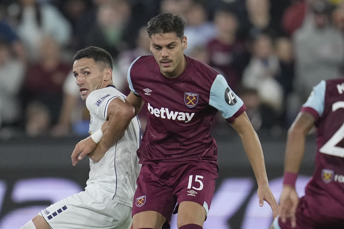 Ο Ντίνος Μαυροπάνος της Γουέστ Χαμ σε στιγμιότυπο της αναμέτρησης με την Μπάτσκα Τοπόλα για τη φάση των ομίλων του Europa League 2023-2024 στο "Λόντον Στέιντιουμ", Λονδίνο | Πέμπτη 21 Σεπτεμβρίου 2023