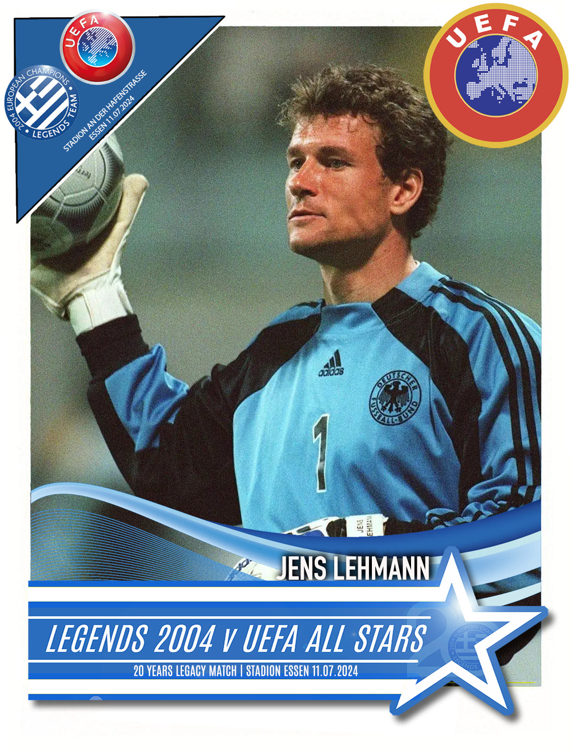 Μάλιστα οι Σιλβέστρ, Μακελελέ και Γκαλάς, οι οποίοι ήταν βασικοί στον προημιτελικό του 2004 όταν η Ελλάδα απέκλεισε τη Γαλλία, αποσκοπούν σε μια ρεβάνς απέναντι στον Θοδωρή Ζαγοράκη και την παρέα του. Υπέρλαμπρα αστέρια του διεθνούς ποδοσφαίρου με πολύ πλούσια βιογραφικά, θα αντιμετωπίσουν τους Legends 2004, σε έναν αγώνα χωρίς προηγούμενο: Ο θρυλικός Γερμανός τερματοφύλακας Γενς Λέμαν, μέλος των “Invincibles” της μεγάλης Άρσεναλ του Αρσέν Βενγκέρ, με θητείες σε Μπορούσια Ντόρτμουντ και Σάλκε και με 61 διεθνείς συμμετοχές. Στο EURO 2004 όπου η Γερμανία αποκλείστηκε στη φάση των ομίλων, ήταν αναπληρωματικός του Όλιβερ Καν.