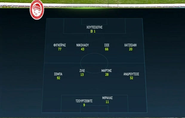 Ο τεχνικός των “ερυθρολεύκων” προχώρησε σε αναμενόμενο ροτέισον, δίνοντας φανέλα βασικού στους Χουτεσιώτη, Νικολάου, Φιγκέιρας, Μαρτίνς, Σισέ, Σεμπά και Ανδρούτσο. Στην διάθεση του Γκαρθία δεν ήταν ο τραυματίας Οτζίτζα (θλάση), ανάσες πήραν οι βασικοί.