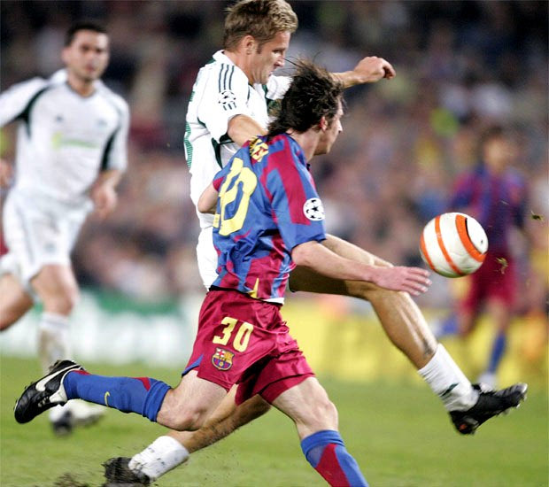 Ο Μέσι πετυχαίνει το πρώτο του ευρωπαϊκό γκολ απέναντι στον Παναθηναϊκό στους ομίλους του Champions League (2/11/2005) Photo: Eurokinissi