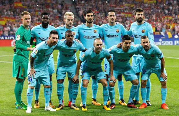 Η ενδεκάδα της Μπαρτσελόνα στο παιχνίδι με την Ατλέτικο (14/10/2017). Πίσω, Τερ Στέγκεν, Ουμτιτί, Ράκιτιτς, Αντρέ Γκόμες, Μπουσκέτς, Πικέ. Μπροστά, Μέσι, Σεμέδο, Ινιέστα, Σουάρες, Τζόρντι Άλμπα. Ο Βαλβέρδε αναμένεται να κάνει πολλές αλλαγές στο αρχικό σχήμα.