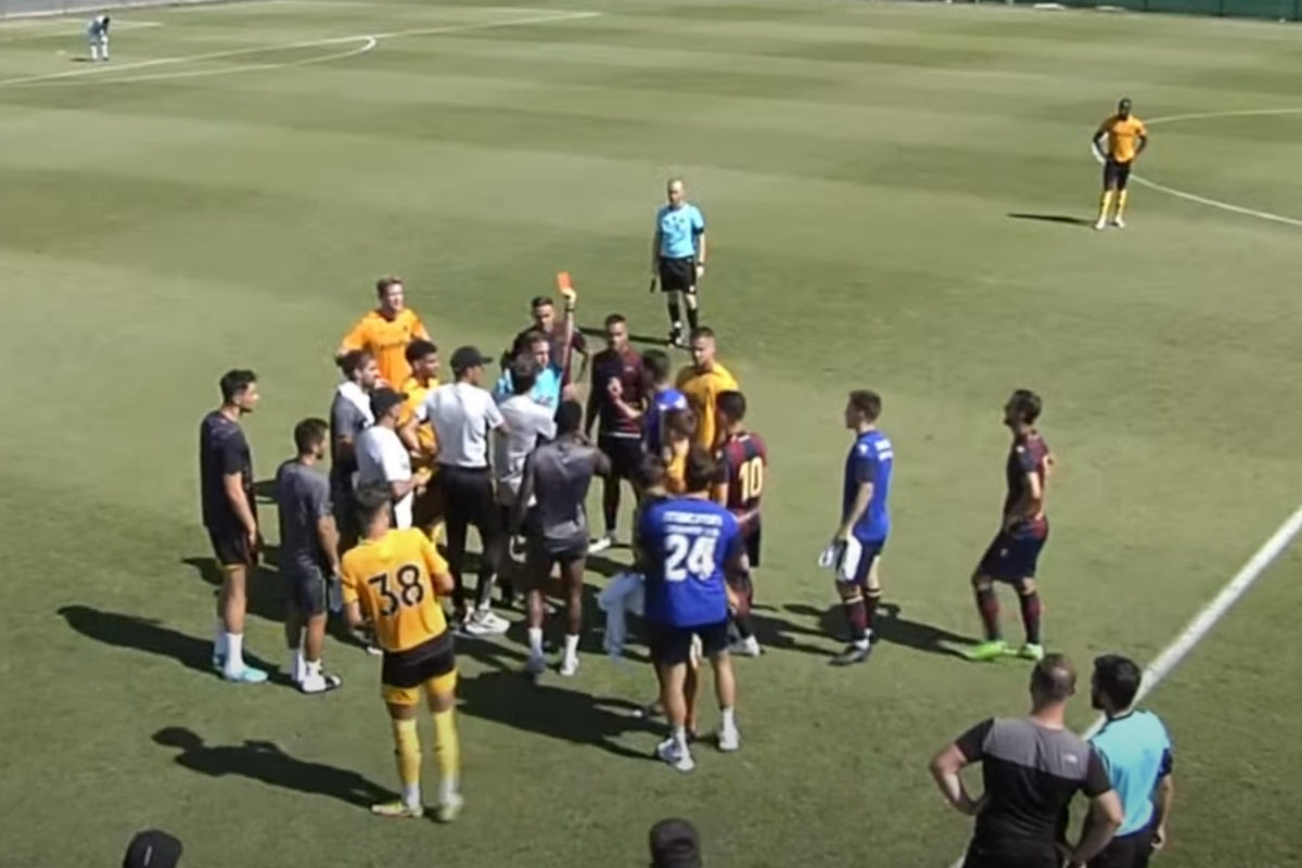 Το παιχνίδι που ξεκίνησε στις 11:30 ώρα Ελλάδος, μόνο φιλικό δεν θα το θεωρήσουμε, αφού λίγο μετά το γκολ της Λεβάντε στο 32′, οι παίκτες των δύο ομάδων μετά από ένα μαρκάρισμα πιάστηκαν στα χέρια, με τον ρέφερι να σταματάει το παιχνίδι για αρκετά λεπτά και να μοιράζει δύο κόκκινες κάρτες, μία σε κάθε ομάδα.