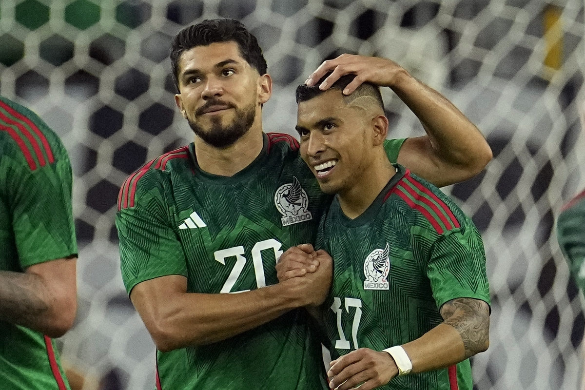 Ο Ορμπελίν Πινέδα πανηγυρίζει με τη φανέλα του Μεξικού