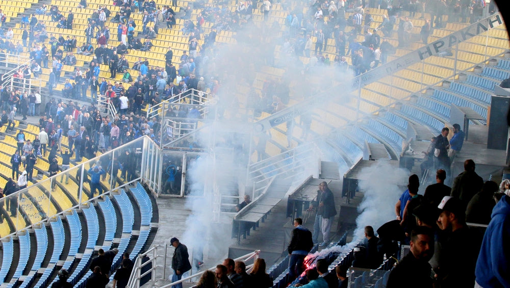 Στιγμές μεγάλης έντασης στο Καυτανζόγλειο, κατά τη διάρκεια του αγώνα του Ηρακλή με τον Ατρόμητο. Οπαδοί του Γηραιού ξέσπασαν κατά της διοίκησης κατευθυνόμενοι στα επίσημα, όπου βρέθηκαν τα ΜΑΤ. (PHOTOS).