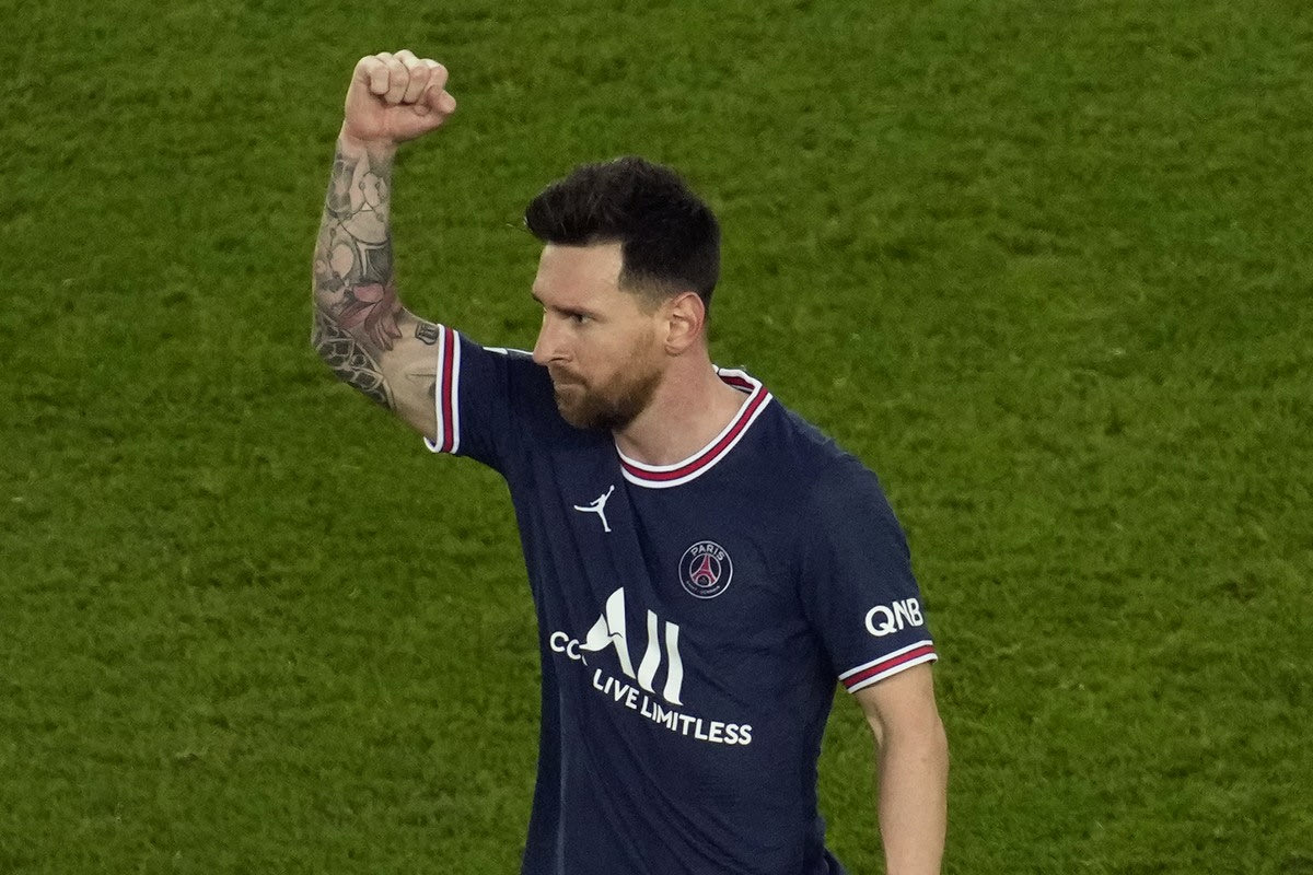 Ο Λιονέλ Μέσι πανηγυρίζει με τη φανέλα της Παρί