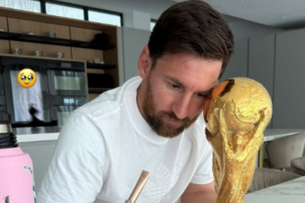 Ο Λιονέλ Μέσι γιόρτασε τα δύο χρόνια από την κατάκτηση του Παγκοσμίου Κυπέλλου του 2022 στο Κατάρ και η σύζυγός του τον απαθανάτισε αγκαλιά με το τρόπαιο.