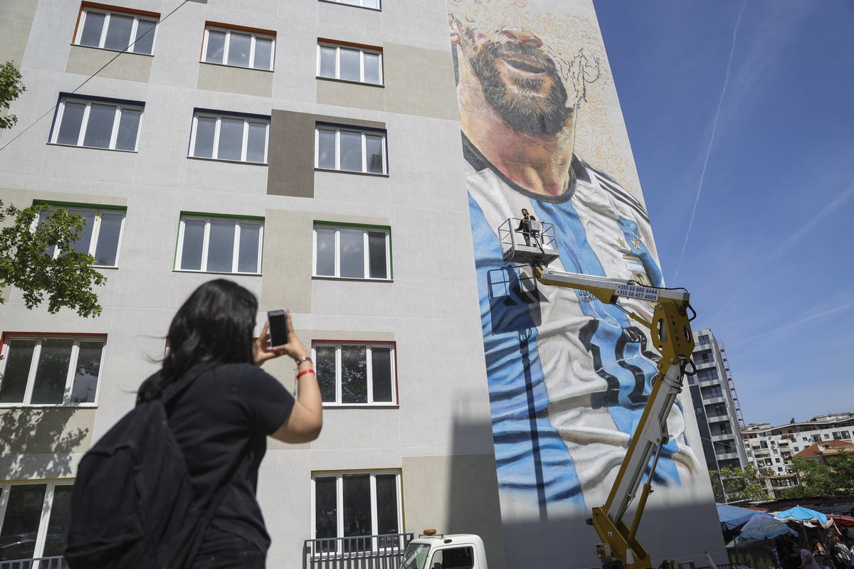 Η εντυπωσιακή τοιχογραφία του Λιονέλ Μέσι με τη φανέλα της Αργεντινής με ύψος 25 μέτρων κοσμεί από την Πέμπτη (8/6) μία από τις φοιτητικές εστίες στα Τίρανα.