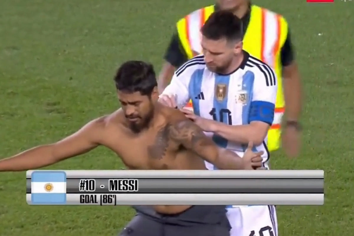 Η λατρεία για τον Λιονέλ Μέσι οδήγησε έναν οπαδό να εισβάλλει στον αγωνιστικό χώρο μετά από γκολ του Pulga απέναντι στην Τζαμάικα και να βάλει τον Αργεντινό σούπερ σταρ να υπογράψει στην πλάτη του.