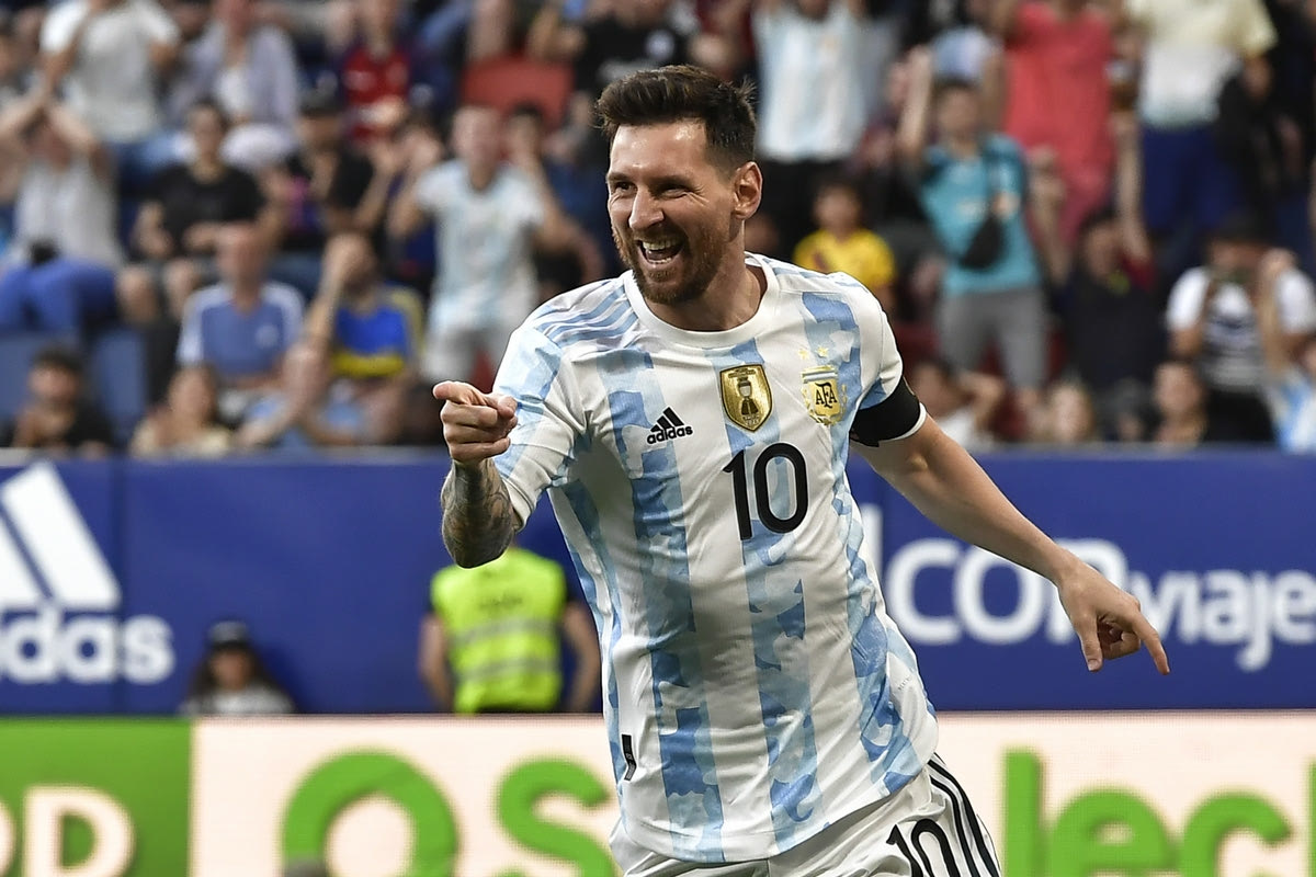Ο Λιονέλ Μέσι πανηγυρίζει γκολ με τη φανέλα της εθνικής Αργεντινής κόντρα στην Εσθονία | 5 Ιουνίου 2022 @2022 Alvaro Barrientos/AP IMAGES