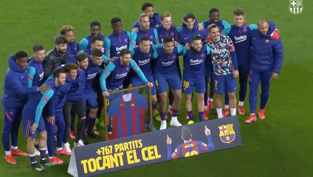 Για αυτό και πριν την έναρξη της αναμέτρησης με τη Βαγιαδολίδ τη Δευτέρα (5/4) το βράδυ ο Αργεντινός μέσος βραβεύτηκε για την προσφορά του με μια φανέλα της Μπαρτσελόνα. Μάλιστα έβγαλε και σχετική φωτογραφία με όλους τους συμπαίκτες του στο κέντρο του Καμπ Νου. Ενώ εν συνεχεία έβγαλε φωτογραφία και με τη γυναίκα του αλλά και τα παιδιά του για να έχει να θυμάται αυτή τη μέρα.