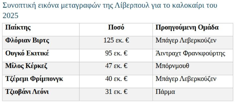 Μεταγραφές Λίβερπουλ 2025: Ρεκόρ δαπανών με 300 εκατ. ευρώ για Βιρτς, Εκιτικέ & Κέρκεζ
