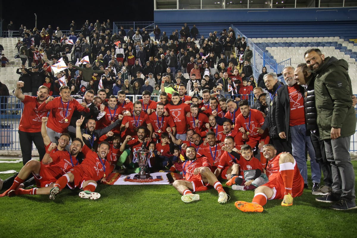 Οι παίκτες του Μικρασιατικού πανηγυρίζουν την κούπα