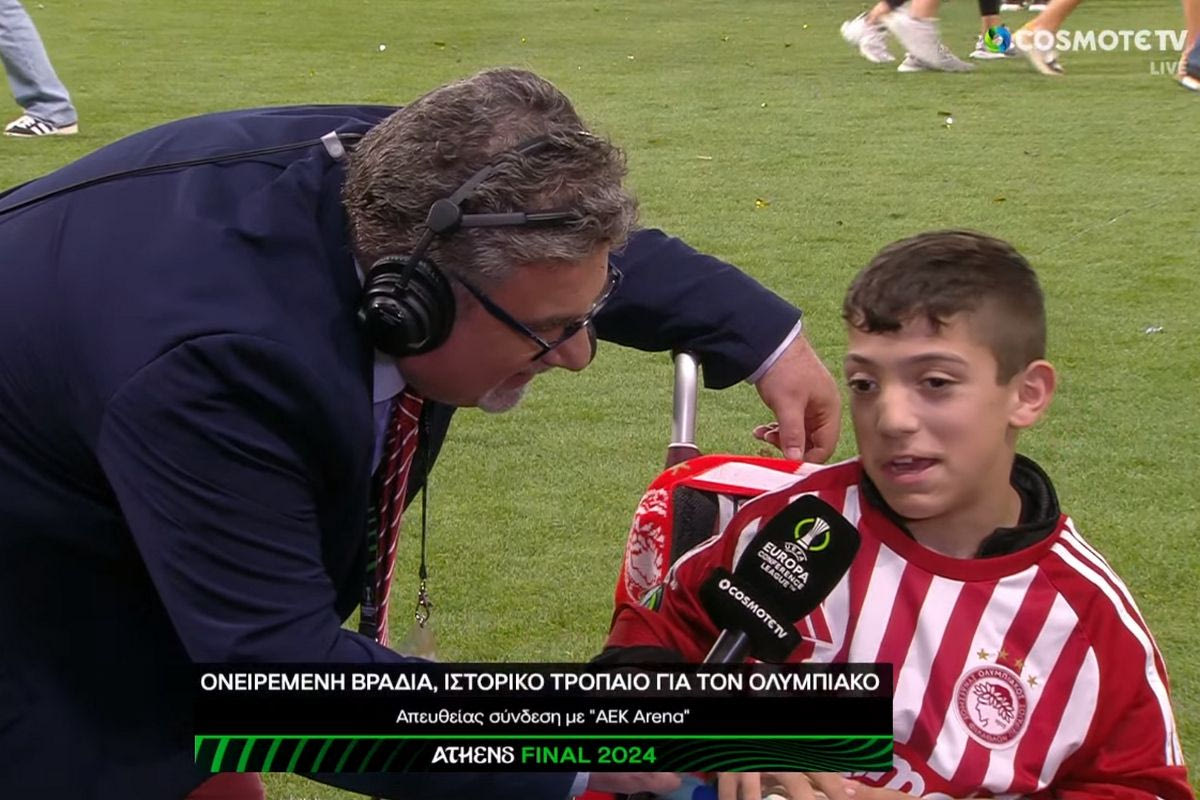 Ο μικρός Γιάννης Παπαστεφανάκης με δηλώσεις του στην COSMOTE TV υποστήριξε πως χάρηκε για την κατάκτηση του Conference League από τον Ολυμπιακό, σημείωσε πως πήρε τη φανέλα του Ελ Κααμπί που τον έχει καψούρα ενώ τόνισε πως δεν είναι ο Γιάννης του ΠΑΟΚ αλλά όλης της Ελλάδας.