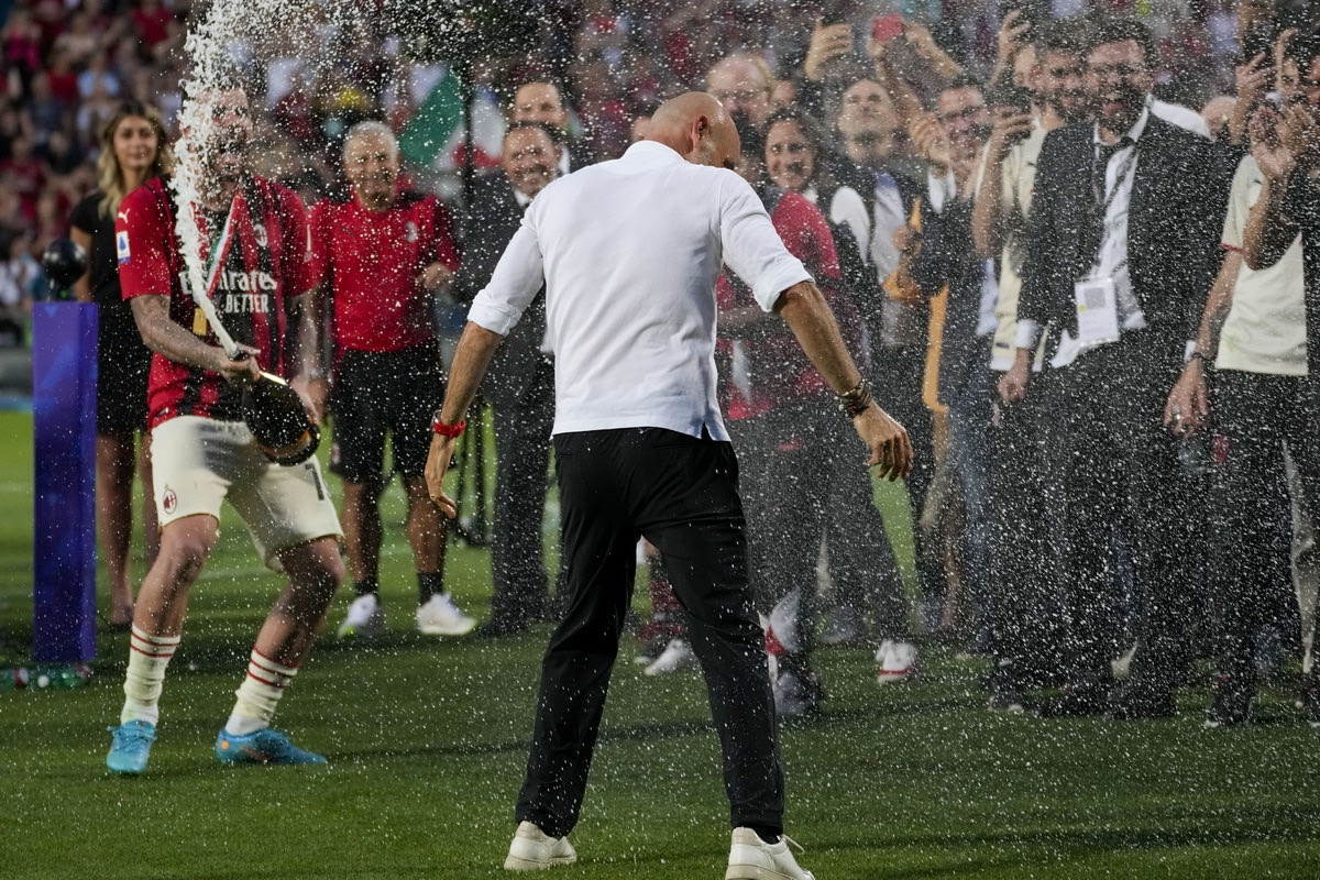Ο Στέφανο Πιόλι πανηγυρίζει με τους παίκτες του την κατάκτηση της Serie A με τη Μίλαν