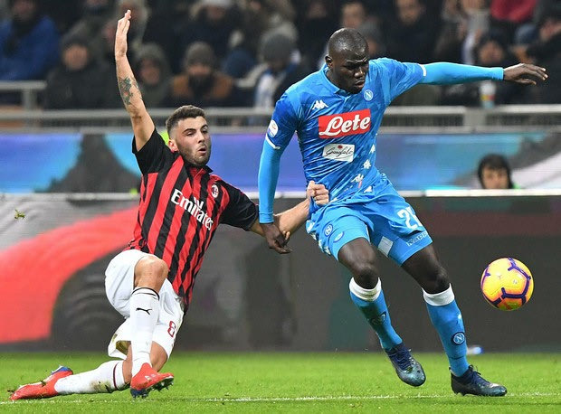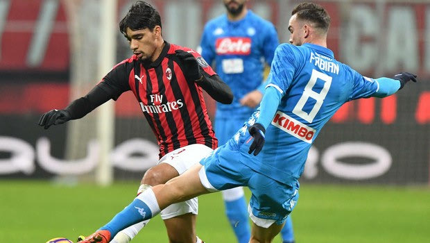 Milan's Lucas Paquet' left, and Napoli's Fabian Ruiz in action during their Italian Serie A soccer match between AC Milan and Napoli, at the San Siro stadium in Milan, Italy, Saturday, Jan. 26, 2019. (AP Photo/Antonio Calanni) AP Photo/Antonio Calanni