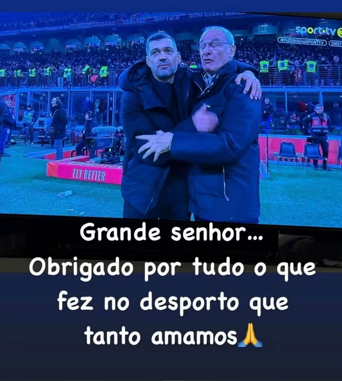 “Ο Ρανιέρι είναι είδωλο για μένα. Διάβασα τα ρόστερ πριν το ματς και είδα δίπλα στο δικό μου όνομα το δικό του, ήταν πραγματικά μία τιμή για μένα”, δήλωσε ο πρώην τεχνικός της Πόρτο για τον Ρανιέρι, όμως δεν έμεινε εκεί αφού θέλησε να εκθειάσει τον πολύπειρο προπονητή και μέσω Instagram ύστερα από τα όμορφα λόγια που του είπε εκείνος στο πλαίσιο της ανταλλαγής χειραψίας.