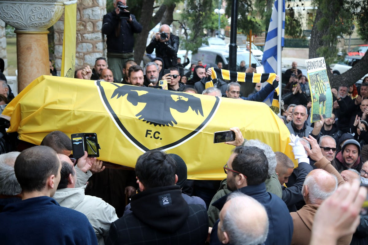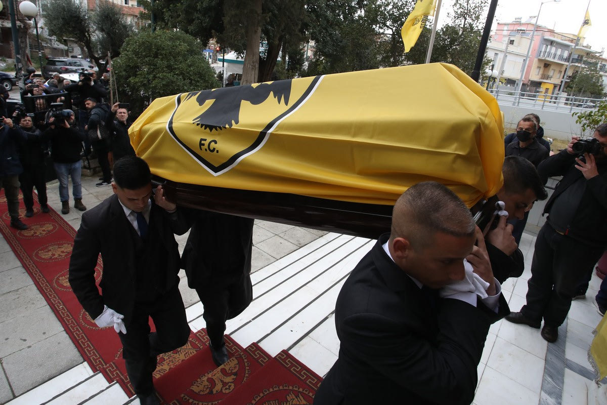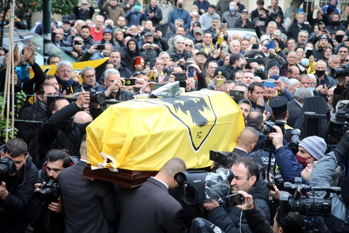 Μίμης Παπαϊωάννου: Πλήθος κόσμου και συγκίνηση στο τελευταίο αντίο, ο ύμνος της ΑΕΚ “συνόδευσε” το φέρετρο