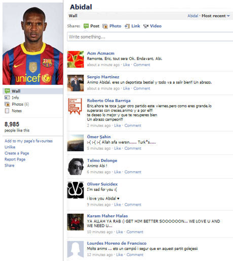 Κάνοντας μια μικρή βόλτα στον “τοίχο” της σελίδας Abidal είδαμε μηνύματα, φυσικά, από Ισπανία: