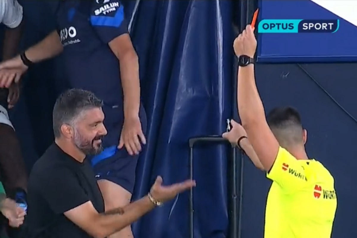 Την στιγμή ωστόσο που ο διαιτητής γύρισε την πλάτη του, ο Γκατούζο ξέσπασε σε ένα ψυγειάκι και το κλώτσησε και στην συνέχεια άρχισε να φωνάζει στον παίκτη του επειδή αποβλήθηκε!