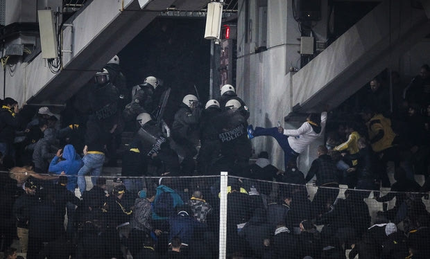 Αυτό είχε ως αποτέλεσμα την άμεση αντίδραση της αστυνομίας και συγκεκριμένα των δυνάμεων των ΜΑΤ που βρίσκονταν έξω από τη Θύρα 35.