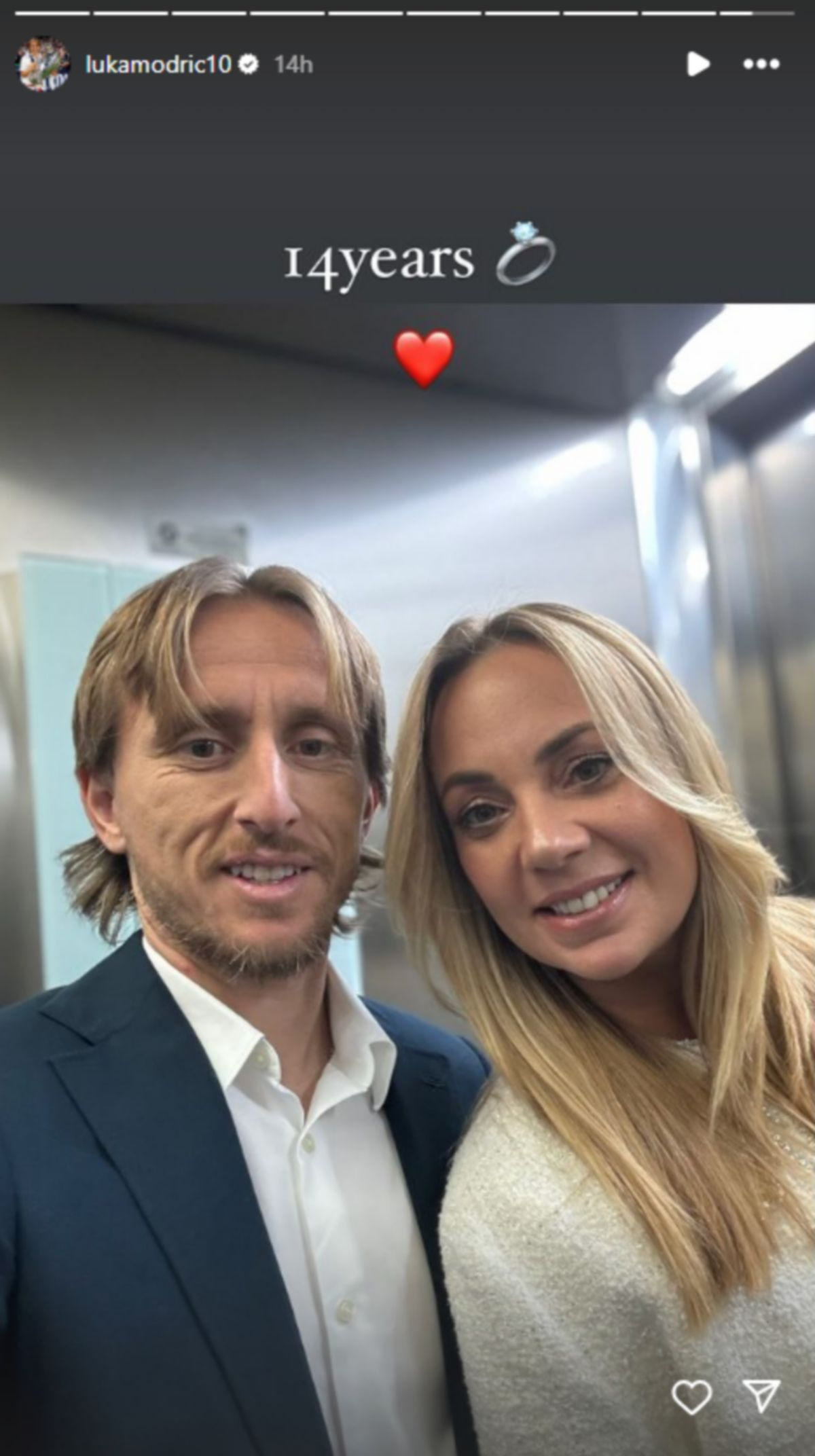 Ο Μόντριτς σήμερα (13/5) με αφορμή την επέτειο γάμο τους ανήρτησε μία σέλφι με την Βάνια, στην οποία οι δύο τους είναι λαμπεροί και απόλυτα ευτυχισμένοι.