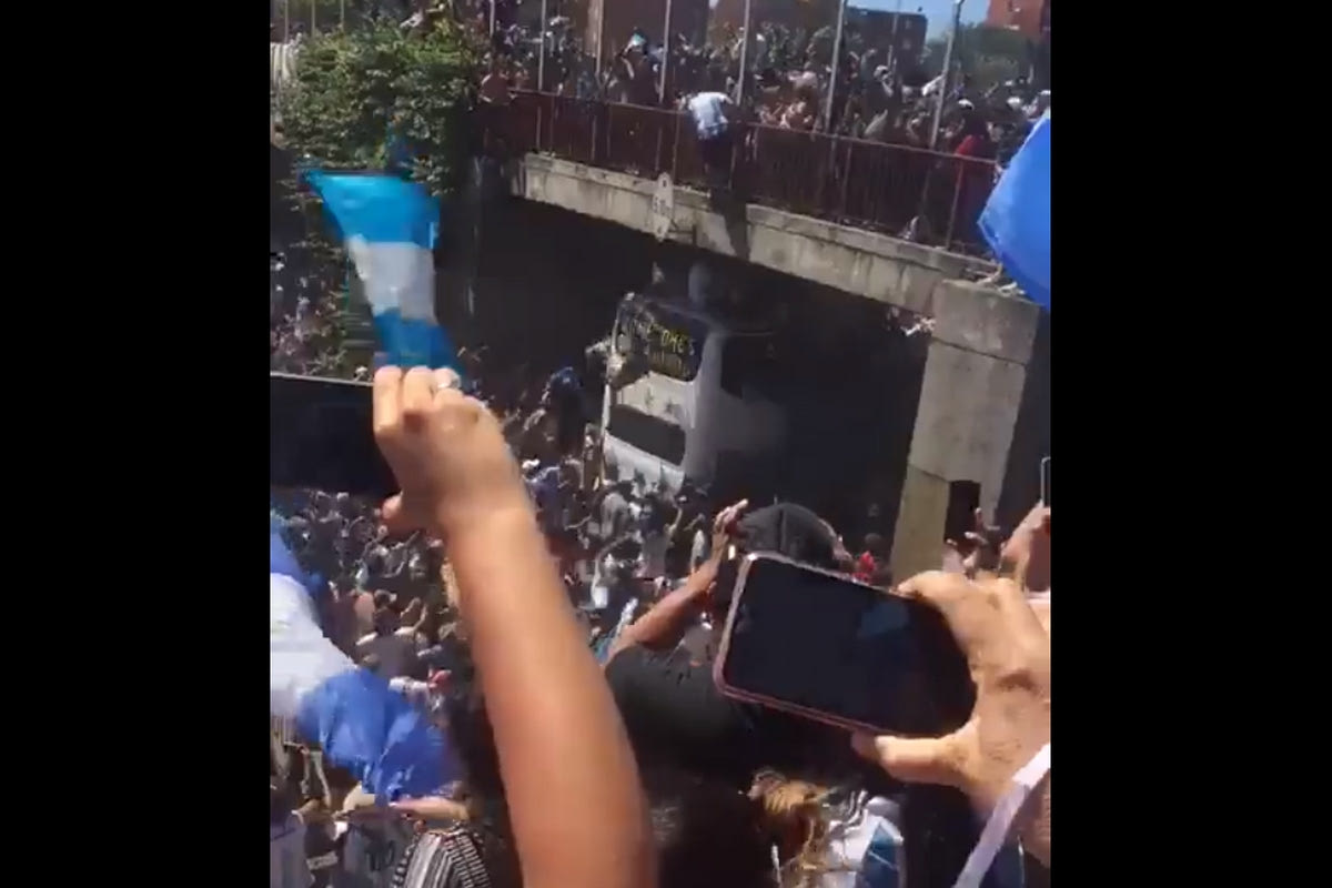 Ένας Αργεντινός επιχείρησε να πηδήξει από γέφυρα και να προσγειωθεί στο ανοιχτό πούλμαν της εθνικής ομάδας στην παρέλαση για το Μουντιάλ 2022, όμως βρέθηκε στην άσφαλτο.
