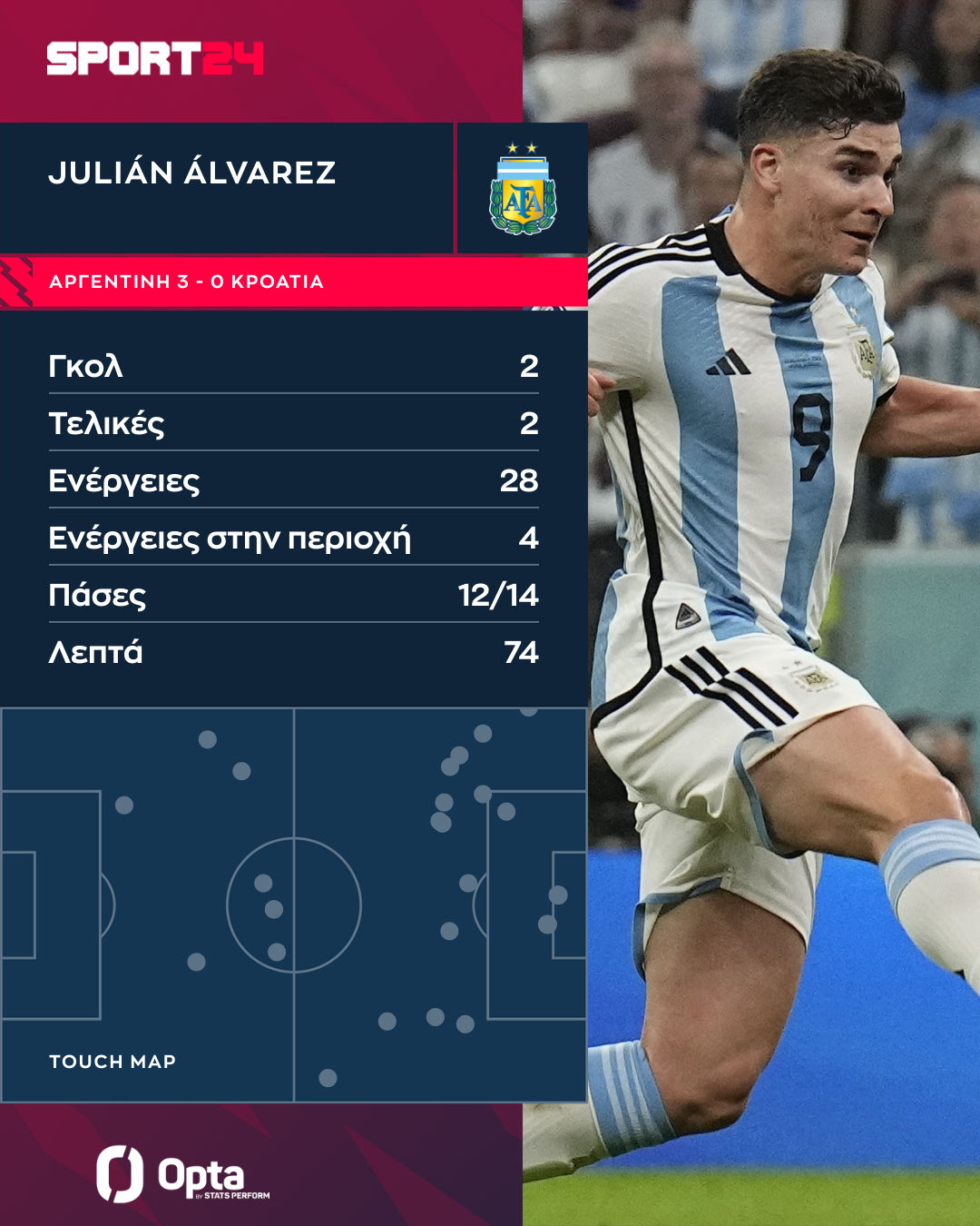 Τα φώτα, όπως ήταν φυσικό, έπεσαν στον Λιονέλ Μέσι. Ο Pulga έκανε μαγικά απέναντι στους Κροάτες, όμως το ματς είχε ακόμη έναν πρωταγωνιστή. Αυτός ήταν ο Χούλιαν Άλβαρες.