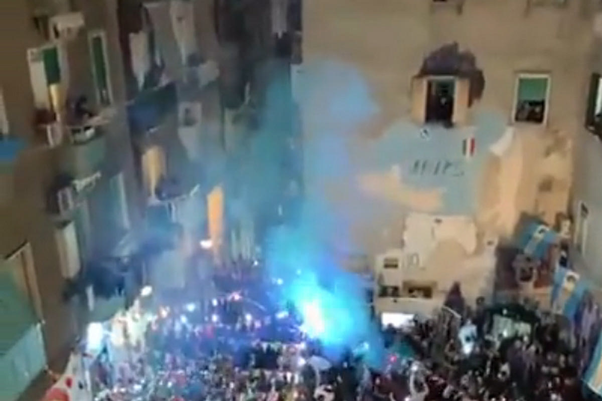 Οι Ναπολιτάνοι πήγαν στο μνημείο που έχει στηθεί στην πόλη για λογαριασμό του “χρυσού παιδιού” και φώναζαν ρυθμικά το όνομα του.