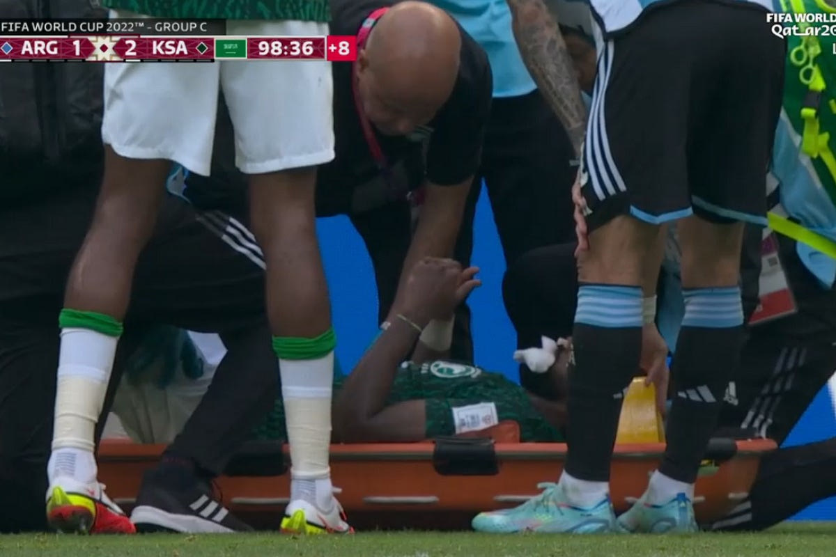 Ο στόπερ της Σαουδικής Αραβίας έμεινε για δύο λεπτά στο έδαφος και ύστερα αποχώρησε με φορείο.