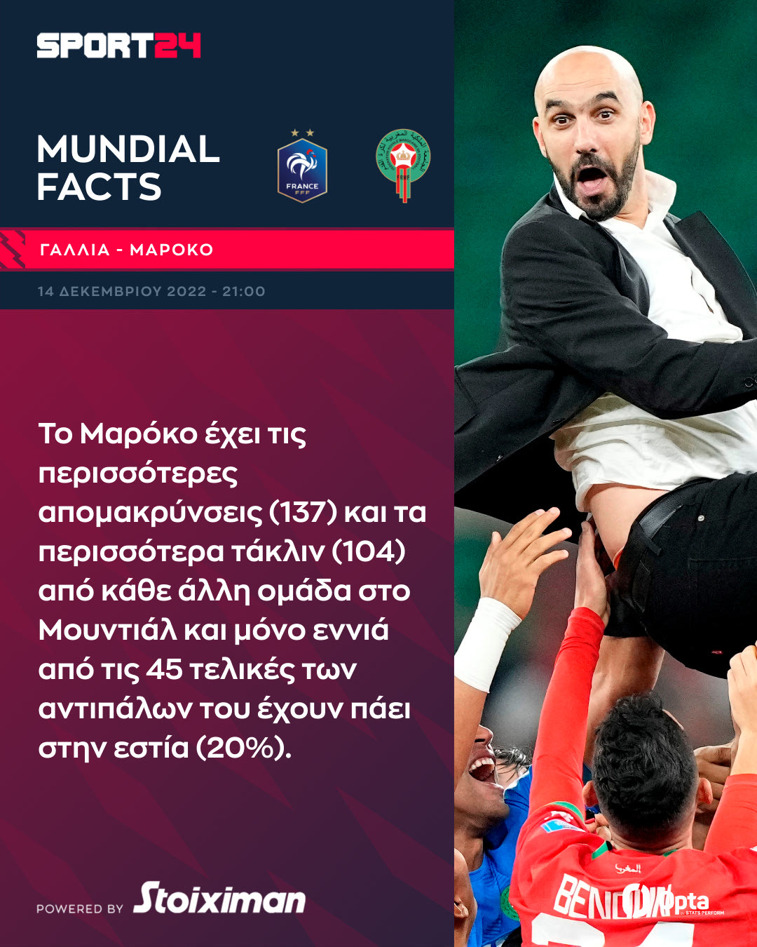 Γαλλία και Μαρόκο κονταροχτυπιούνται για να δώσουν ραντεβού με την Αργεντινή για τη διεκδίκηση της κορυφής του κόσμου. Δείτε ορισμένα στοιχεία της μεγάλης μάχης.