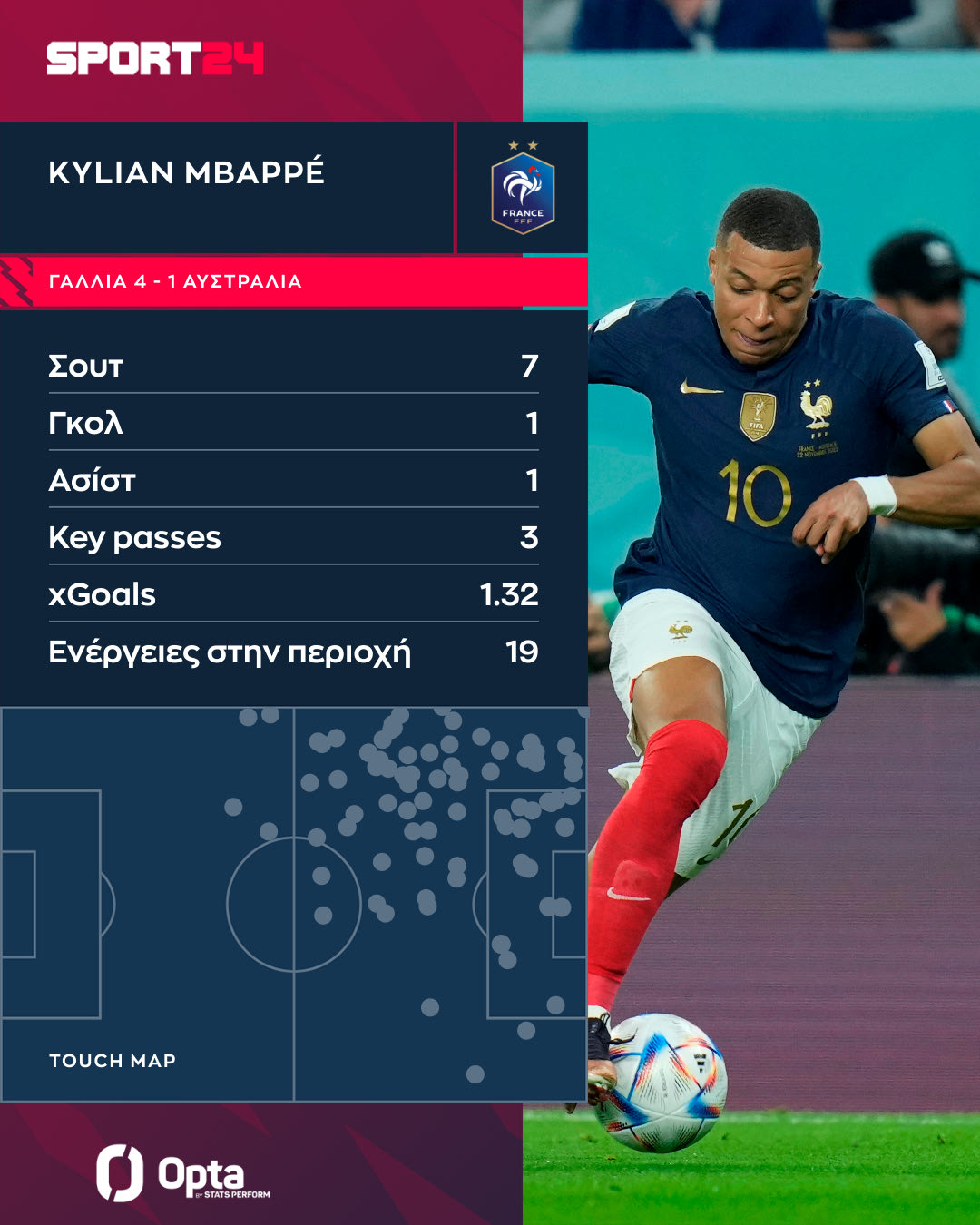 Μουντιάλ 2022, Γαλλία: Ο εξωπραγματικός Εμπαπέ έχει πατήσει μόνος τους στην περιοχή περισσότερο από εννιά ομάδες του τουρνουά