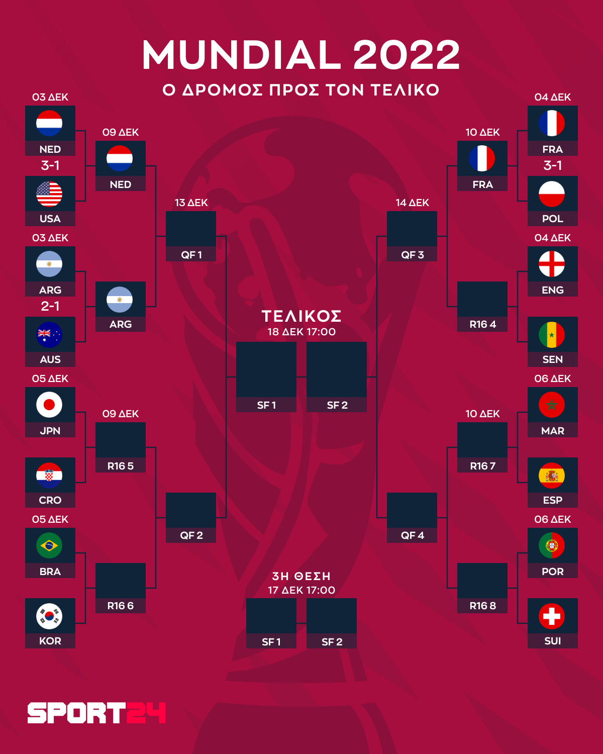 Το SPORT24 παίζει μόνο Μουντιάλ 2022 και σε πάει στο Παγκόσμιο Κύπελλο ! Δες αναλυτικα το Πρόγραμμα του Μουντιάλ και τα αποτελέσματα των αγώνων του Μουντιάλ, Παρακολούθησε το Μουντιάλ live στο Matchcenter, κάνε εγγραφή στα push notifications του SPORT24 και στο Youtube κανάλι για να ενημερώνεσαι και να μη χάνεις καμία αθλητική στιγμή!