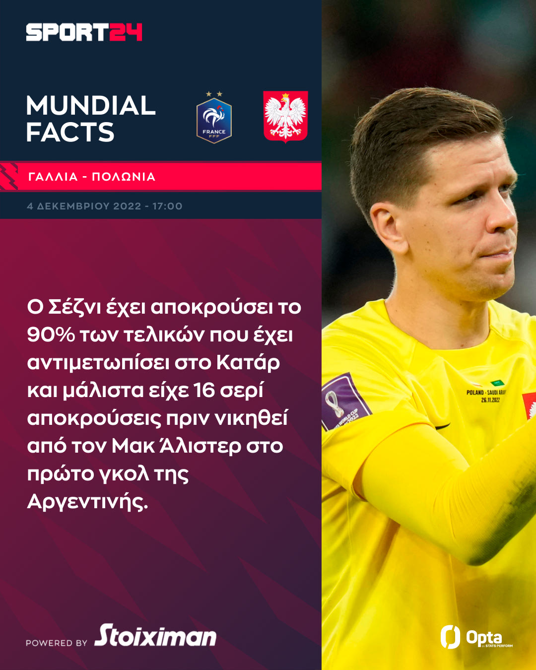 Η παγκόσμια πρωταθλήτρια Γαλλία έκανε το καθήκον της στους ομίλους του Μουντιάλ 2022 και πρώτος αντίπαλος στα νοκ-άουτ στην προσπάθειά της να διατηρήσει τα σκήπτρα της είναι η Πολωνία (04/12, 17:00, ΑΝΤ1 και Live SPORT24).