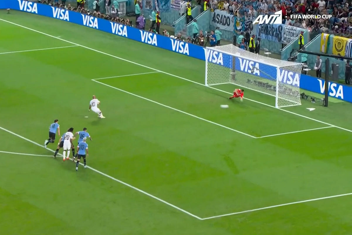 Ο Ρουτσέτ με μια εντυπωσιακή επέμβαση δεν άφησε τον Αντρέ Αγιού να σκοράρει από τη βούλα του πέναλτι και κράτησε το μηδέν στην εστία της Ουρουγουάης.