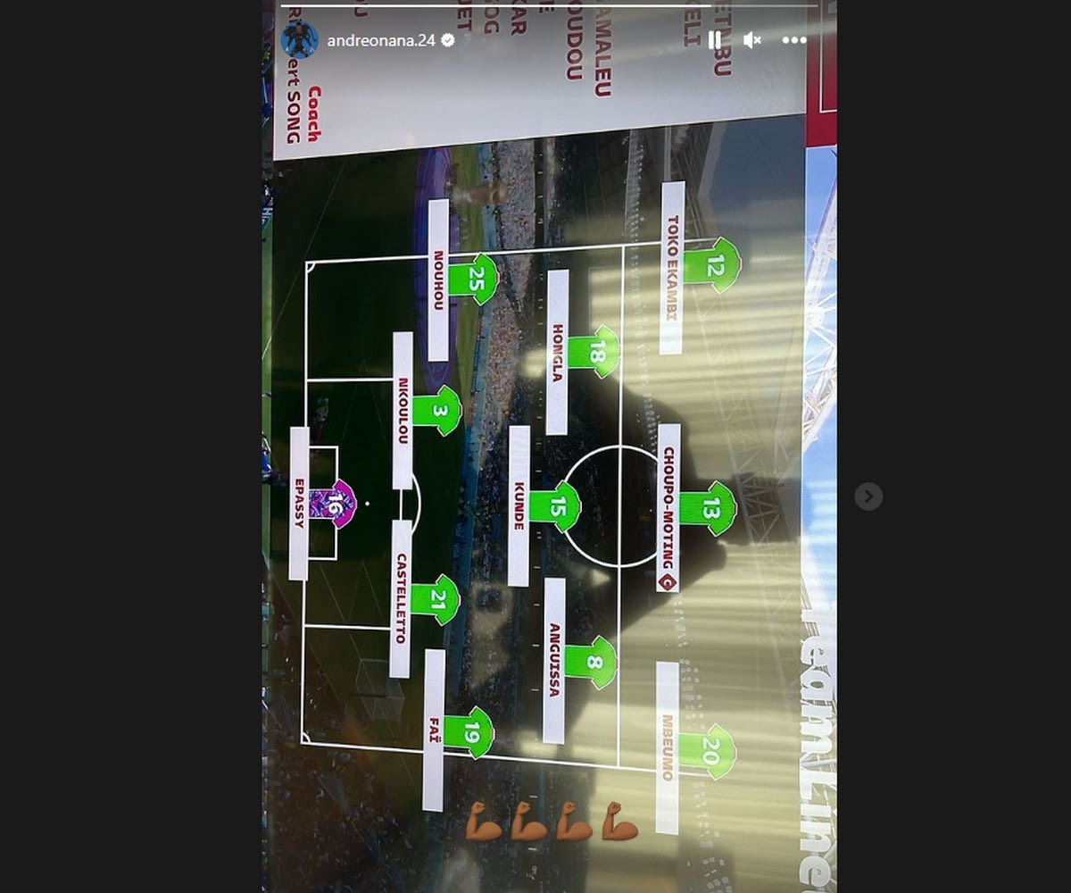Μάλιστα, ο Ονανά, λίγο πριν τη σέντρα του αγώνα με τη Σερβία, έκανε story στο Instagram με την 11άδα του Καμερούν, επιβεβαιώνοντας πως δεν βρέθηκε στο γήπεδο και πως είδε το ματς από την τηλεόραση.