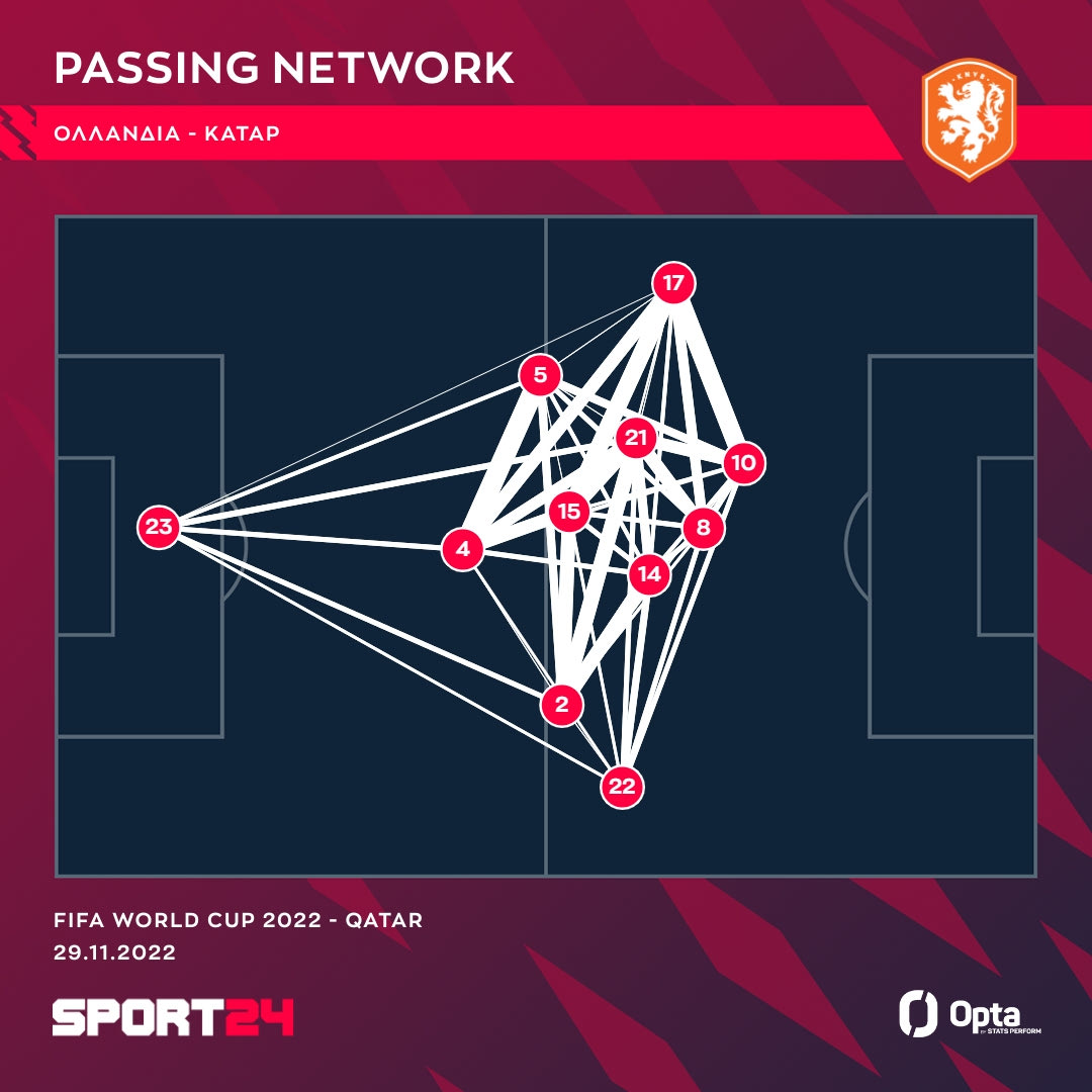 Το δίκτυο μεταβιβάσεων των παικτών της Ολλανδίας κόντρα στο Κατάρ SPORT24/STATS PERFORM