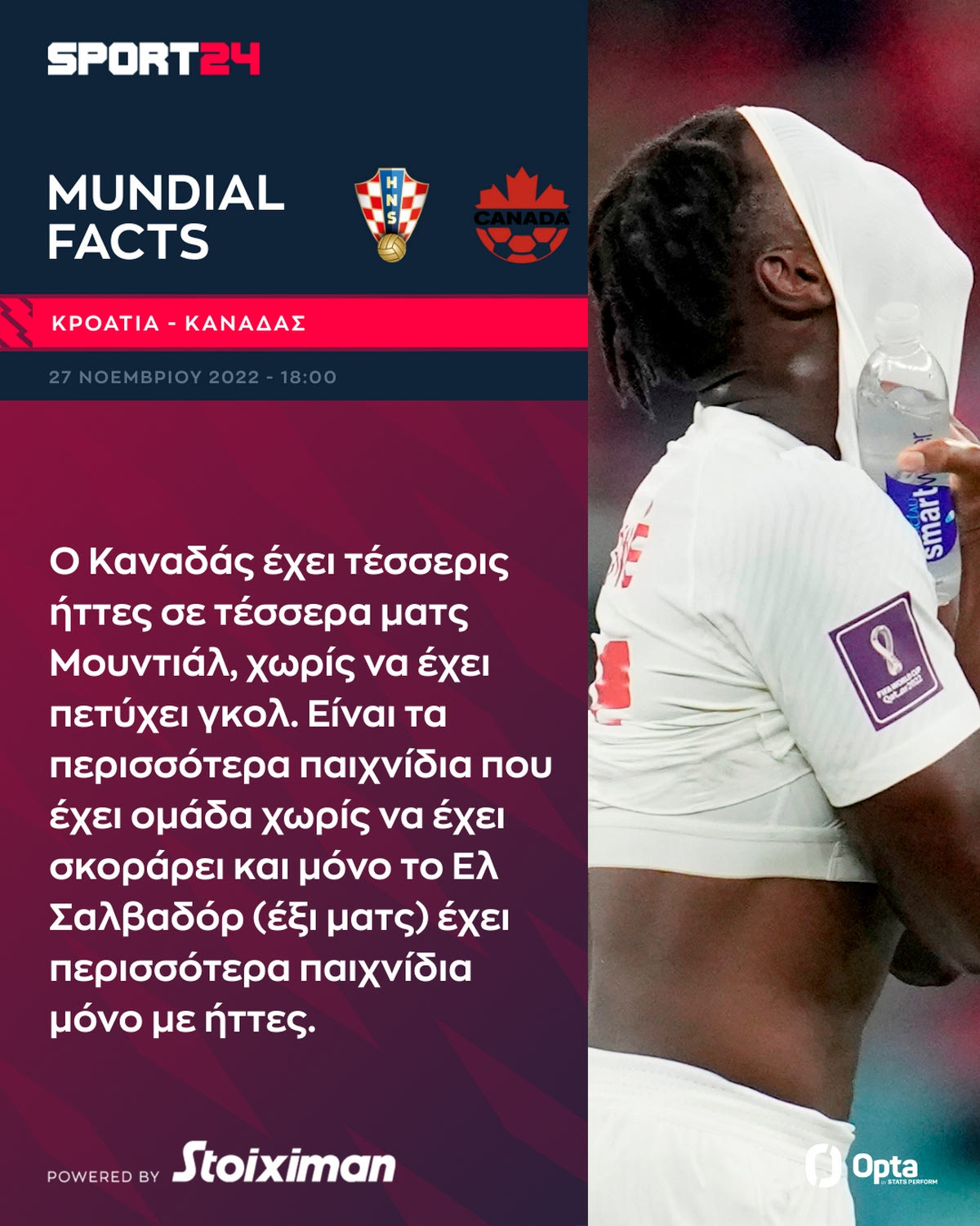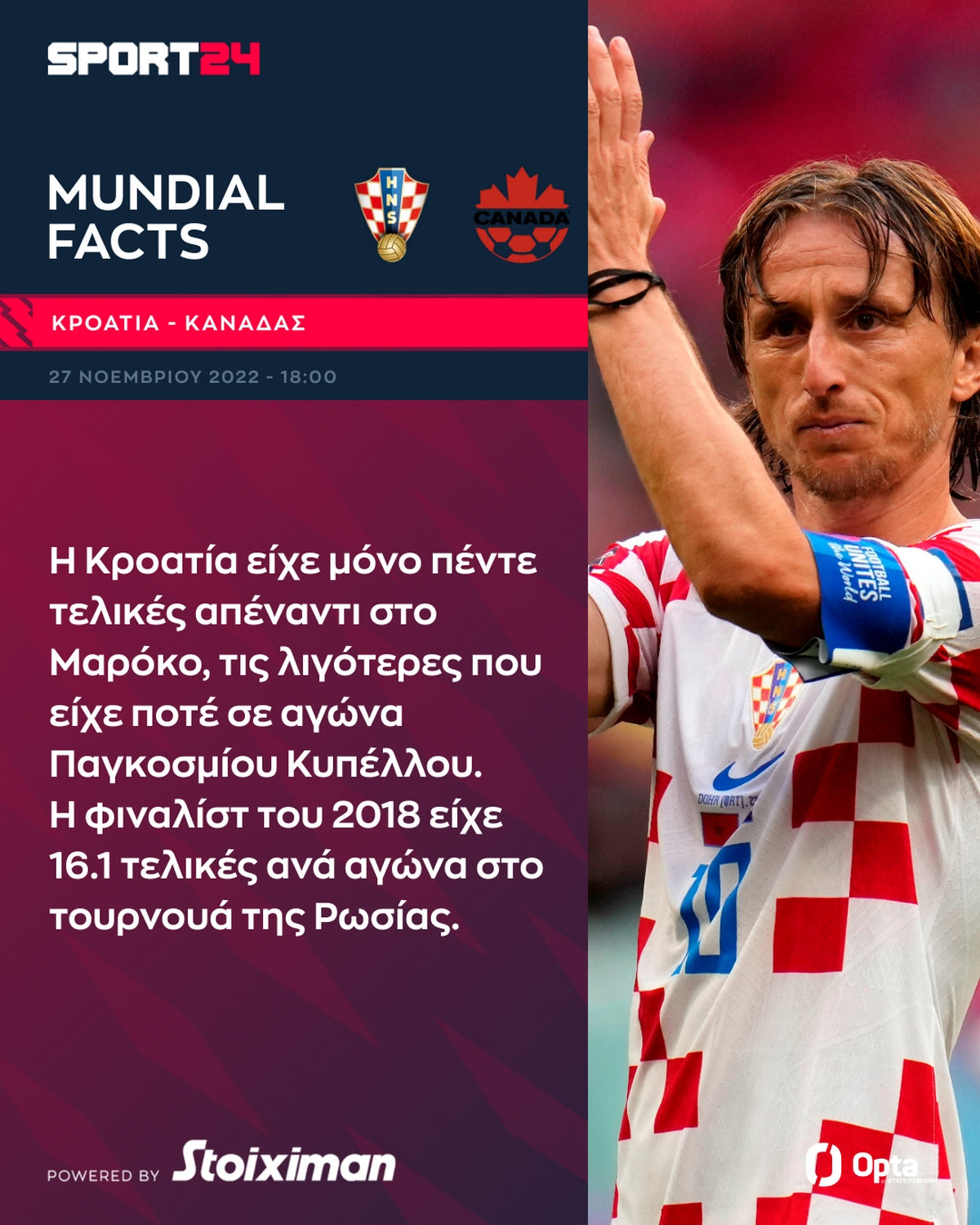 Κροατία και Καναδάς κοντράρονται σ' έναν σημαντικό αγώνα για την εξέλιξη του έκτου ομίλου του Μουντιάλ 2022. Πάμε να δούμε χρήσιμα facts για το παιχνίδι.