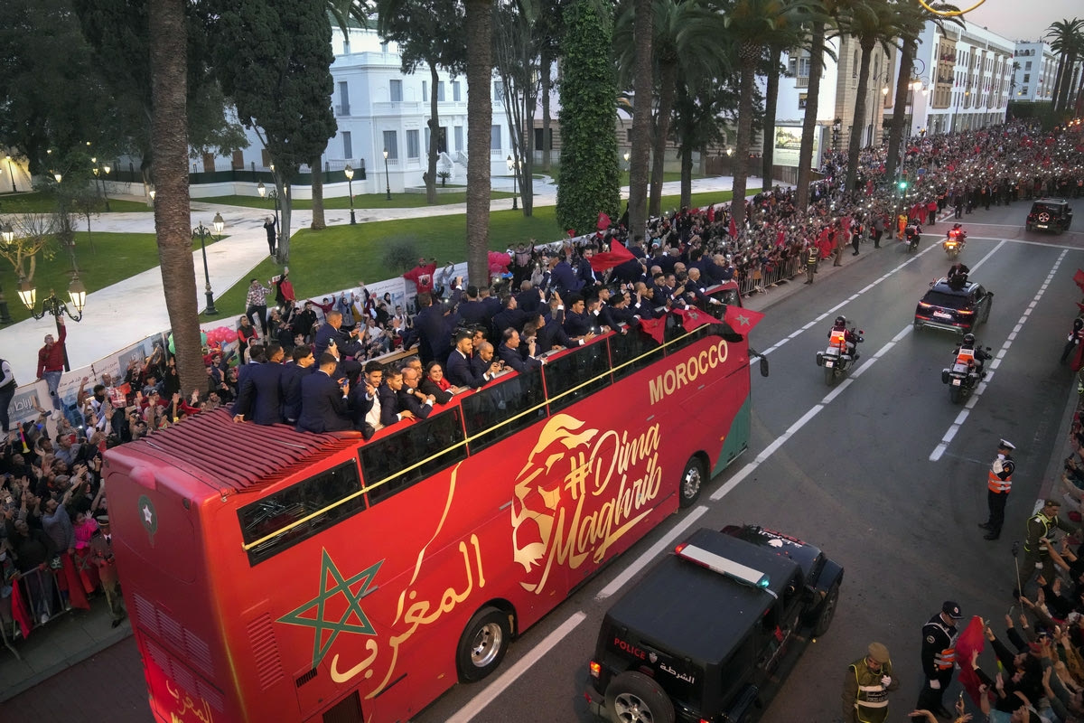 Δεκάδες χιλιάδες Μαροκινοί ξεχύθηκαν στους δρόμους του Ραμπάτ για να αποθεώσουν την εθνική ομάδα που επέστρεψε από το Κατάρ με την 4η θέση του Μουντιάλ 2022 στις αποσκευές της.