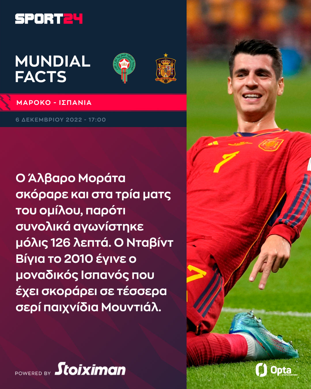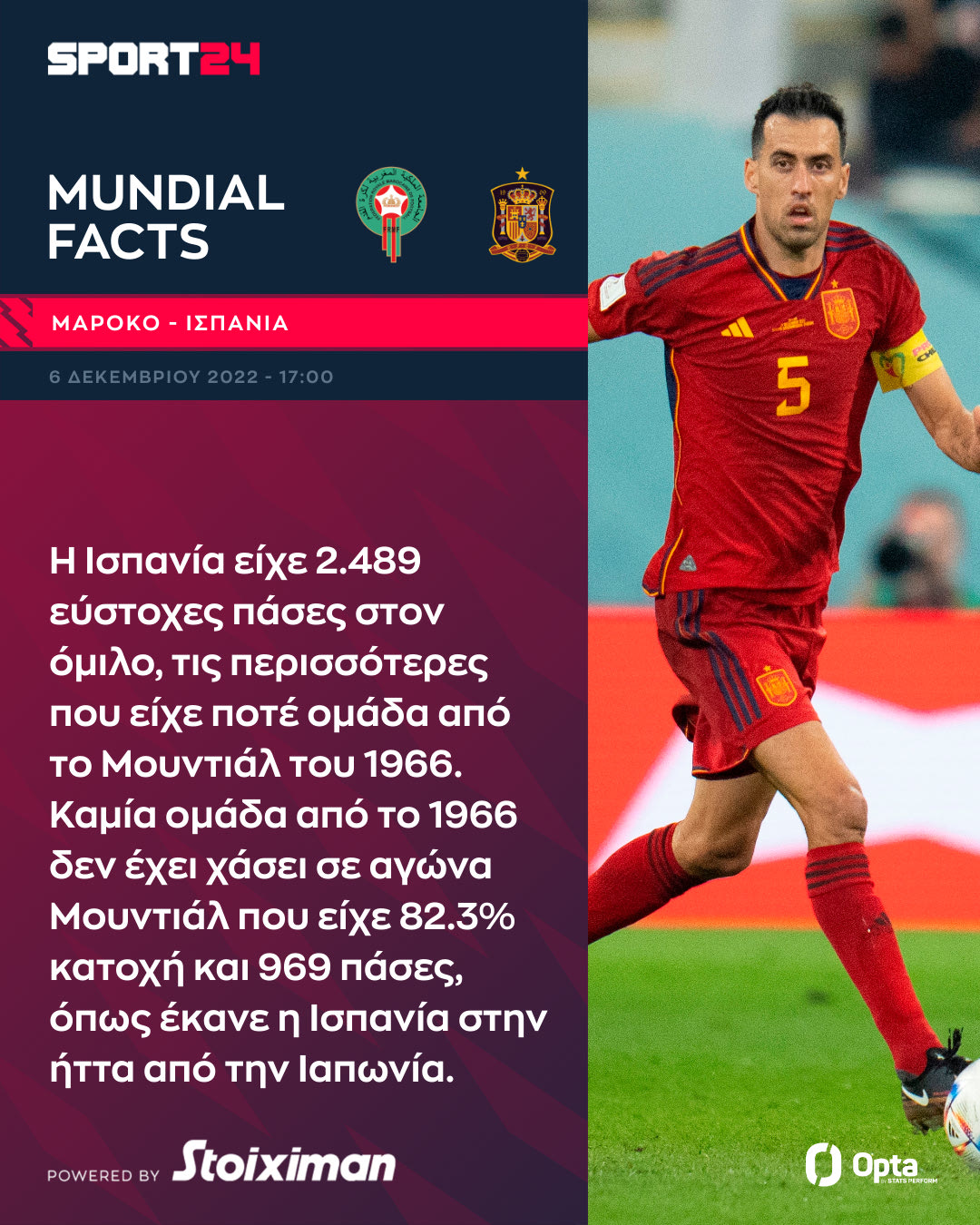 Η Ισπανία αντιμετωπίζει το Μαρόκο με φόντο την πρόκριση στους 16 του Παγκοσμίου Κυπέλλου. Δείτε μερικά χρήσιμα facts ενόψει της αναμέτρησης.