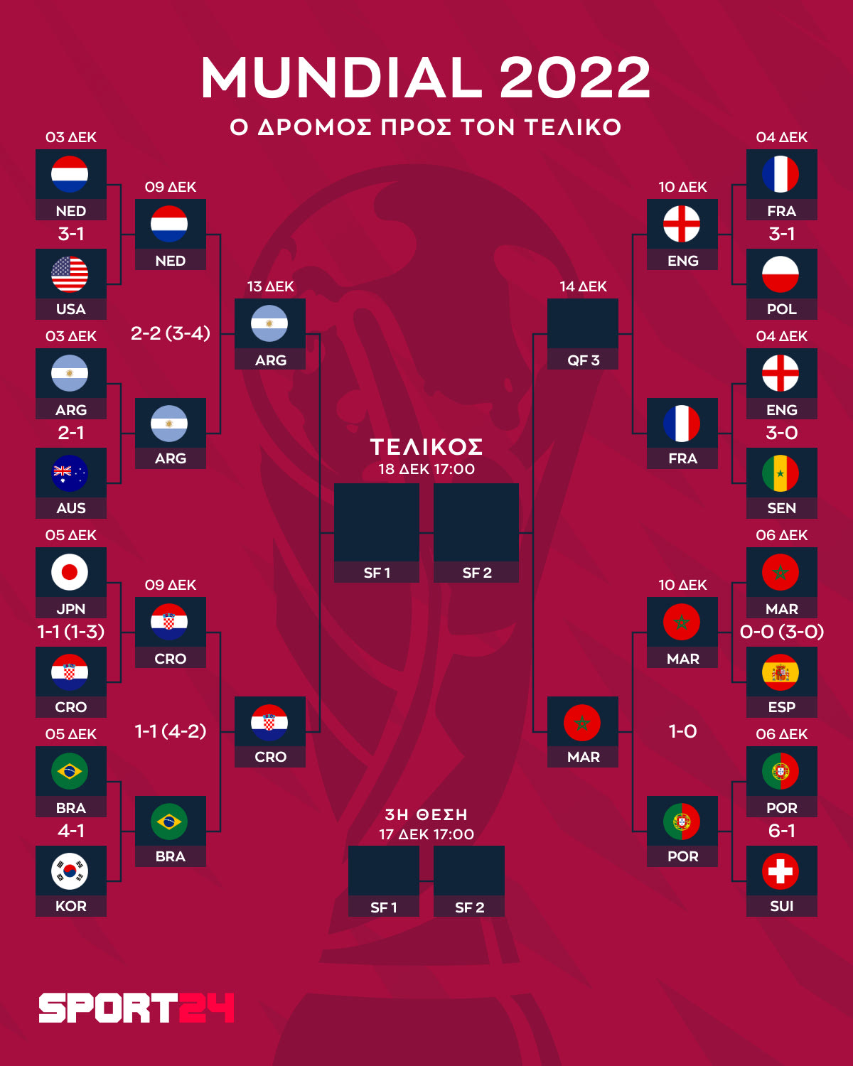 Το SPORT24 παίζει μόνο Μουντιάλ 2022 και σε πάει στο Παγκόσμιο Κύπελλο ! Δες αναλυτικα το Πρόγραμμα του Μουντιάλ και τα αποτελέσματα των αγώνων του Μουντιάλ, Παρακολούθησε το Μουντιάλ live στο Matchcenter, κάνε εγγραφή στα push notifications του SPORT24 και στο Youtube κανάλι για να ενημερώνεσαι και να μη χάνεις καμία αθλητική στιγμή!