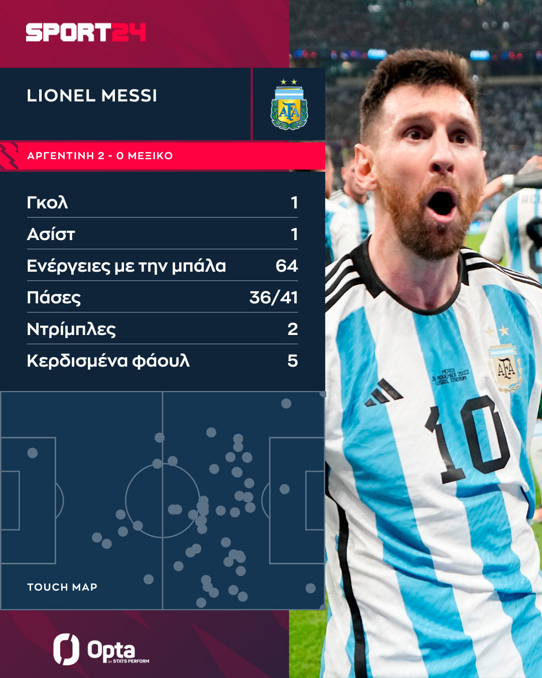 Μετά το 1-0 προσέθεσε κι αυτό που χρειαζόταν η Αργεντινή στο ματς, να κρατήσει την μπάλα και να κερδίσει φάουλ, τελείωσε το ματς με πέντε κερδισμένα.