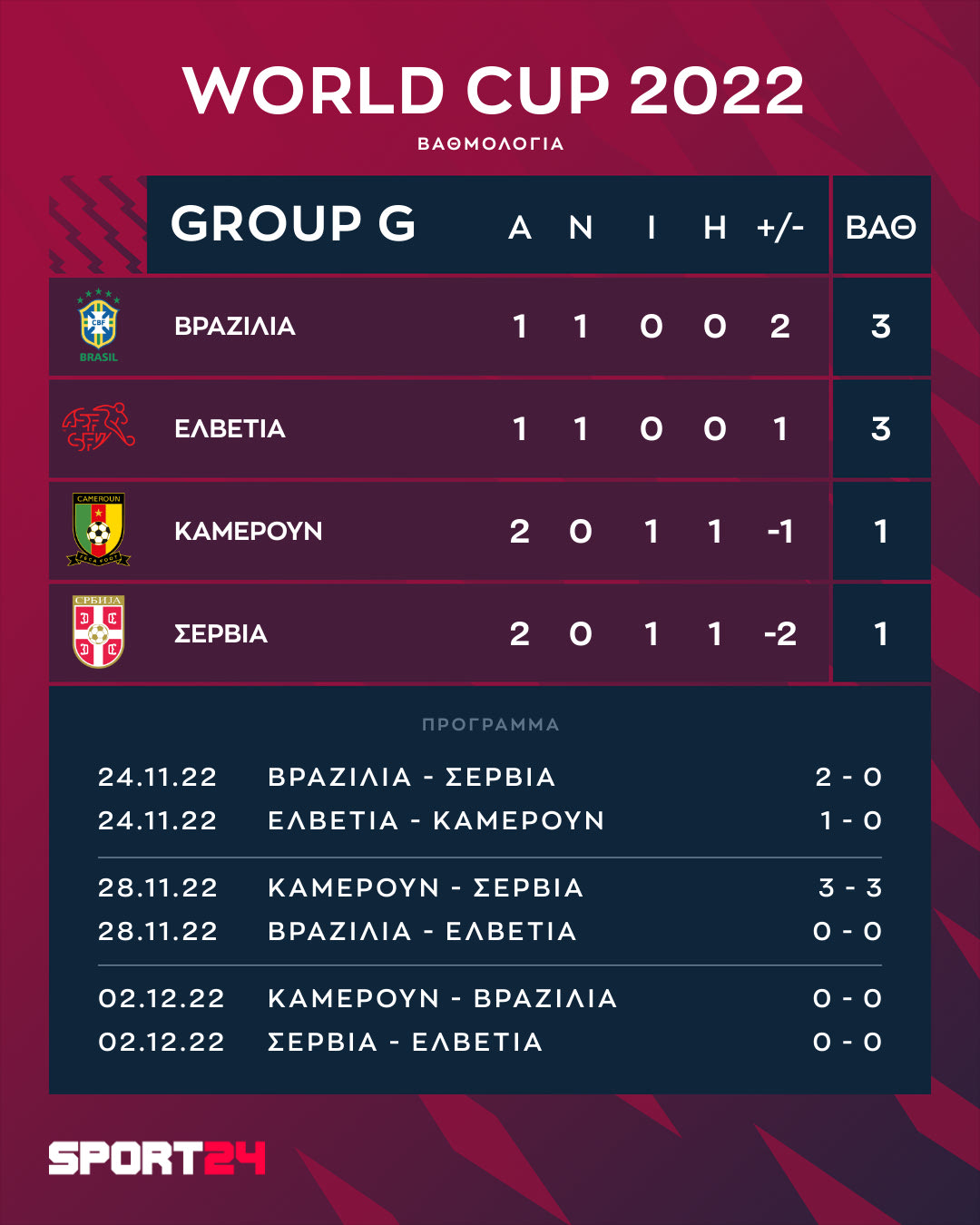 Το SPORT24 παίζει μόνο Μουντιάλ 2022 και σε πάει στο Παγκόσμιο Κύπελλο ! Δες αναλυτικα το Πρόγραμμα του Μουντιάλ και τα αποτελέσματα των αγώνων του Μουντιάλ, Παρακολούθησε το Μουντιάλ live στο Matchcenter, κάνε εγγραφή στα push notifications του SPORT24 και στο Youtube κανάλι για να ενημερώνεσαι και να μη χάνεις καμία αθλητική στιγμή!