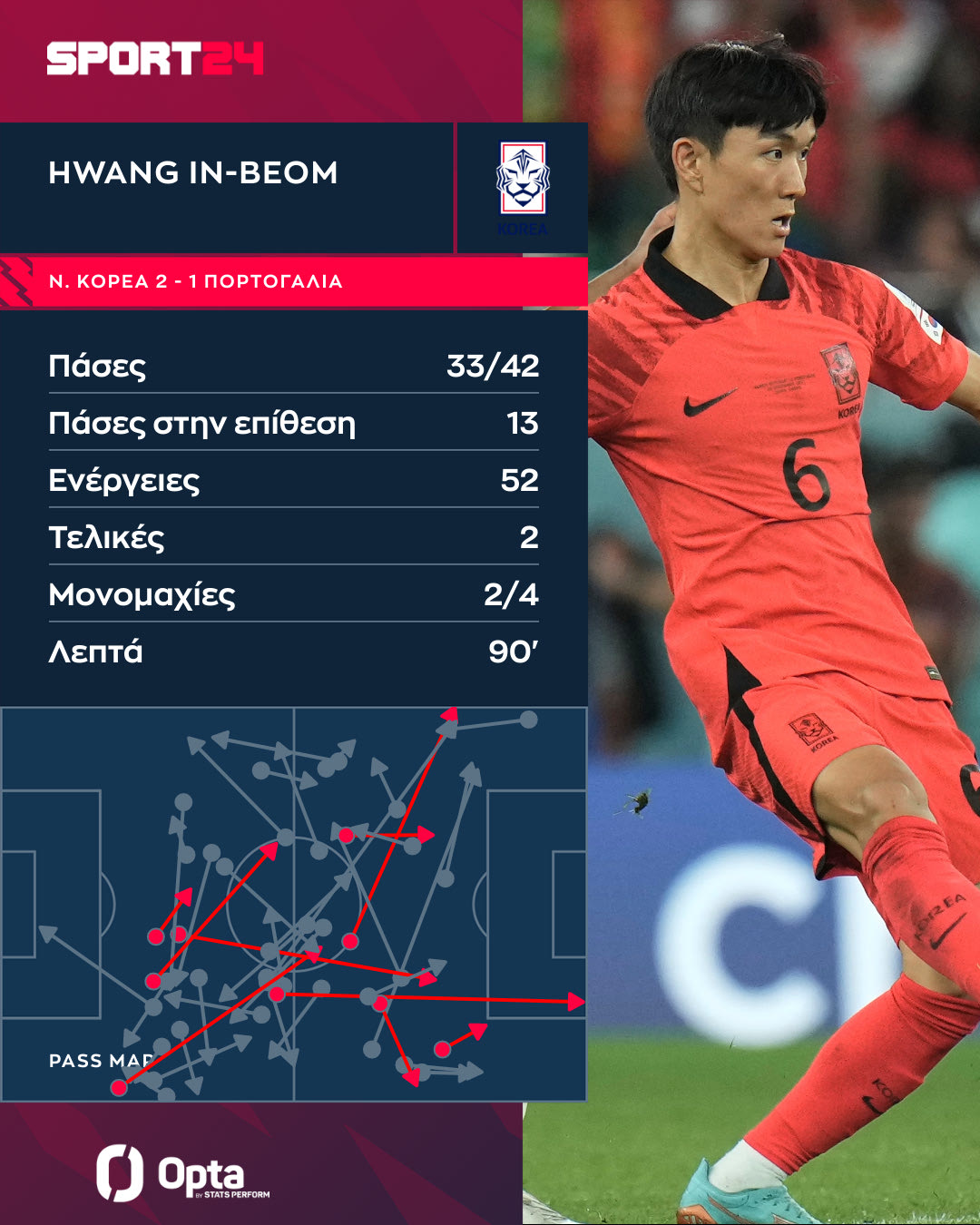 Οι πάσες και τα κορυφαία στατιστικά του Ίνμπομ Χουάνγκ κόντρα στην Πορτογαλία
